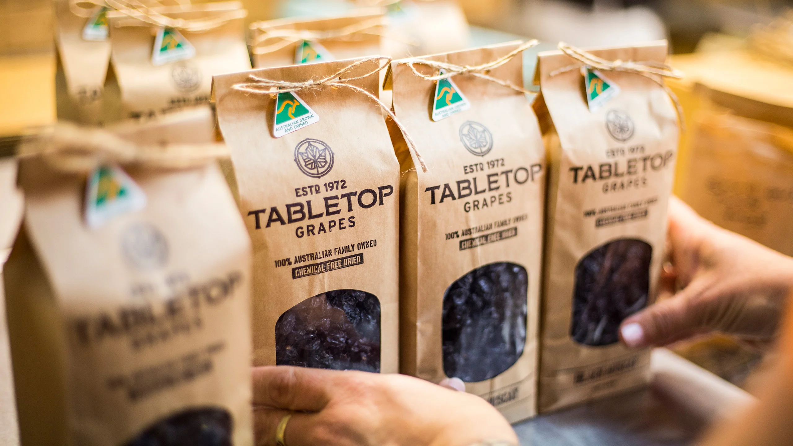 Effective produce branding helps to elevate a great local success story into a globally recognised name. This was our goal for Tabletop Grapes, a family business born from Gino and Elina Garreffa’s passion for the land over 40 years ago. From their Mildura vineyards, they have built a brand synonymous with quality, sustainability, and incredible flavour. Their chemical-free dried fruit and award-winning table grapes are now celebrated worldwide for their taste and integrity, earning them a loyal following. The challenge was to create a brand identity and digital presence that fully captured the premium quality of their products and the heart of their family story.